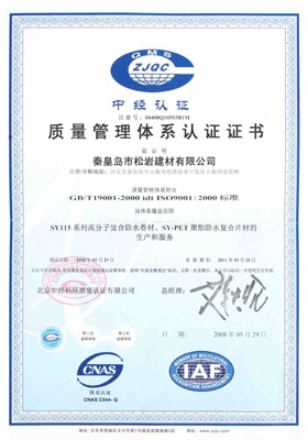 ![]() 中國(guó)建筑防水協(xié)會(huì)會(huì)員證書(shū) | ![]() 質(zhì)量管理體系認(rèn)證證書(shū) |